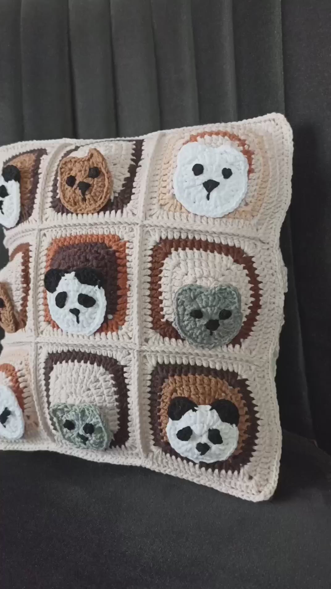Ayıcık Motifli Örgü Kırlent Kılıfı, Ayıcıklı Yastık Kılıfı - El Yapımı Hediye Kırlent