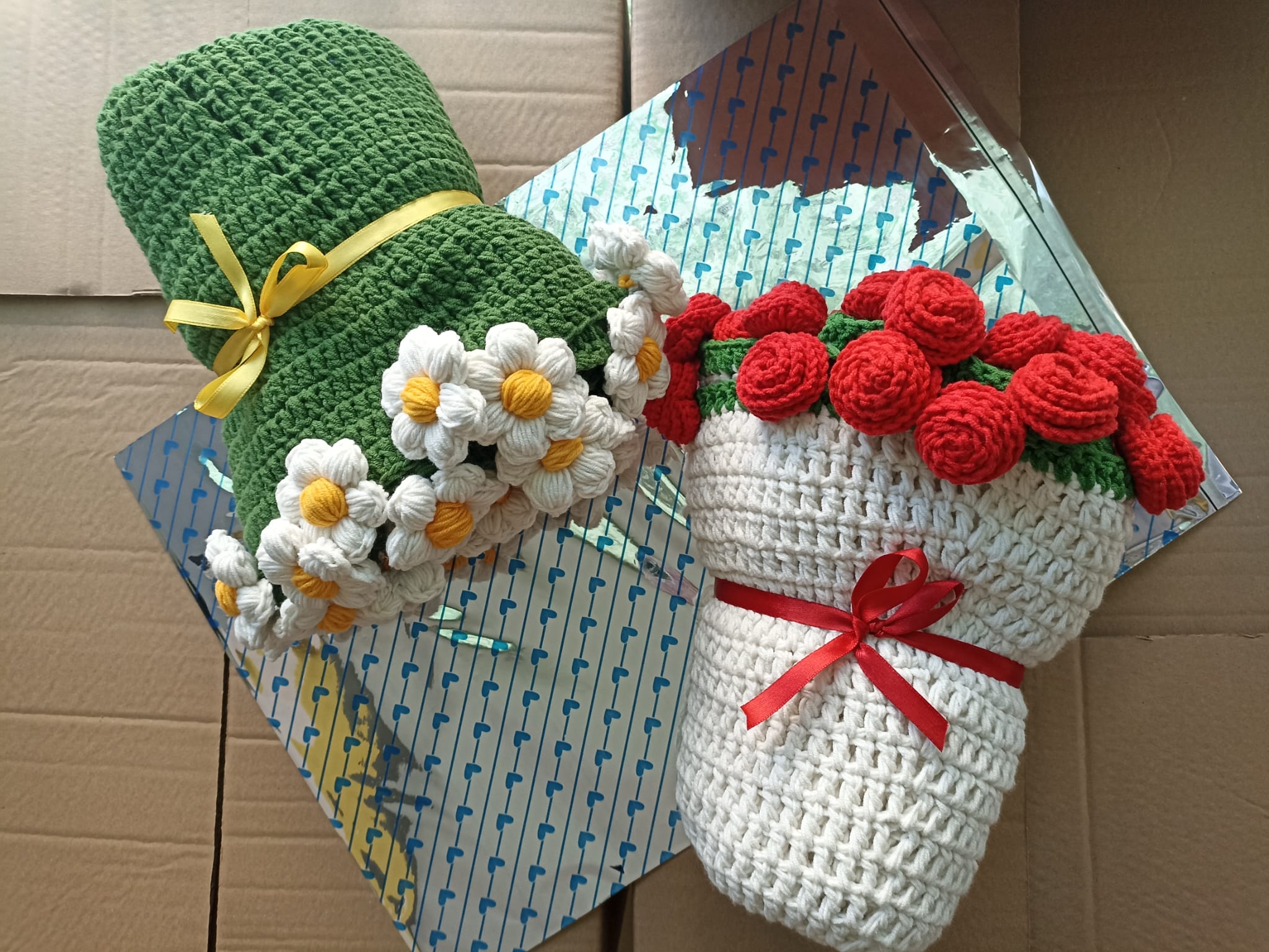 Her bir buket battaniye özenle el yapımı olarak üretilmiştir. Her dikişi, her ilmeği ile benzersizdir ve kişisel bir dokunuş taşır. Evinize katacağı özel hava her zaman fark edilir.