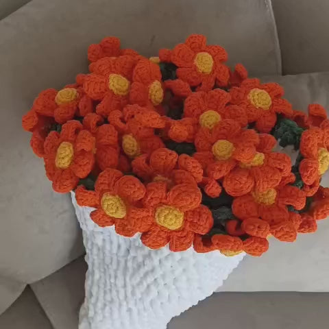 El Yapımı Turuncu Papatya Kadife Buket Battaniye - Turuncu Papatya- Tasarım Ürün (80 cm - 100 cm - 120 cm çapında)